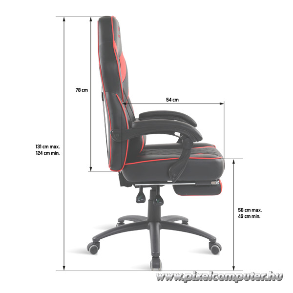 A MUSTANG Red gamer szék nemcsak a komfortot, hanem a dizájnt is új szintre emeli. A sportautókat idéző vonalvezetés és a piros-fekete színkombináció dinamikus, modern megjelenést kölcsönöz, amely bármely gamer setup középpontjává válik. A műbőr borítás elegáns, ugyanakkor könnyen tisztítható és rendkívül tartós. A fémvázas alap stabilitást garantál, a nylon görgők pedig sima mozgást tesznek lehetővé minden felületen. A Pixelcomputer vásárlói szerint a szék összeszerelése egyszerű, a végeredmény pedig lenyűgöző – robusztus, kényelmes és vizuálisan is magával ragadó.