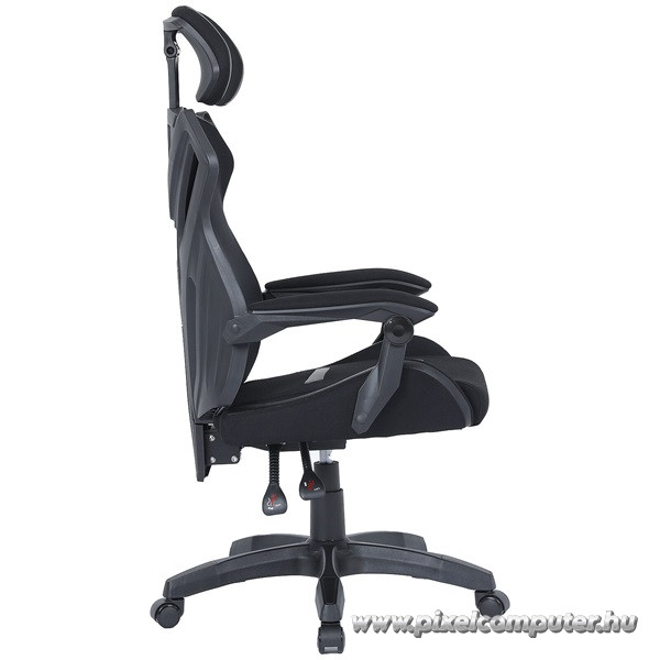 A fix, párnázott kartámasz és a kényelmes fejtámla ideális alátámasztást nyújtanak a vállaknak és a nyaknak – így a feszültség és fáradtság a múlté. A robosztus csillagalap extra stabilitást garantál még akkor is, ha teljesen hátradőlsz – ez az a szék, ami megbízhatóan követi minden mozdulatodat.