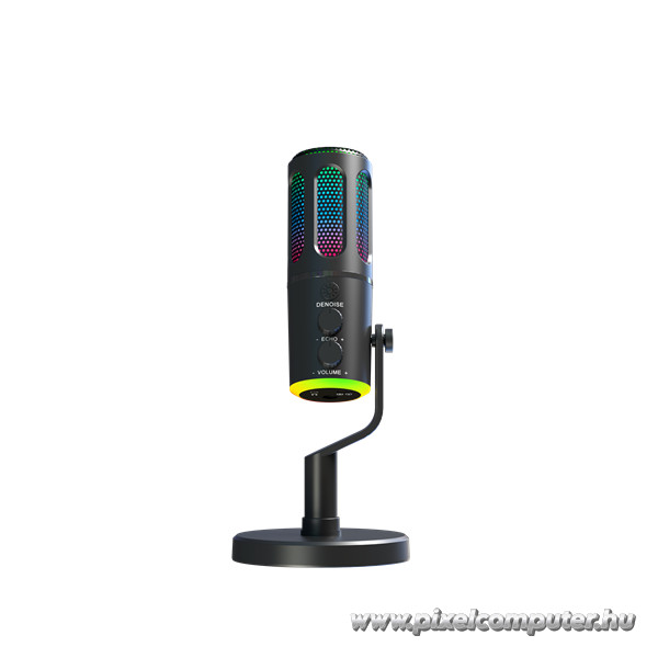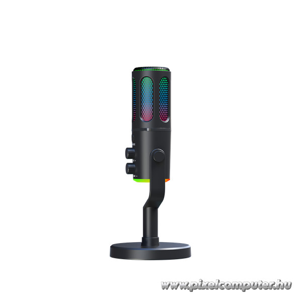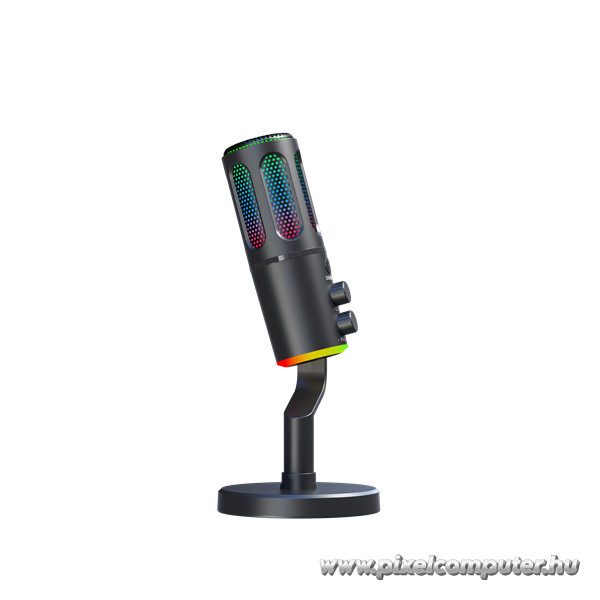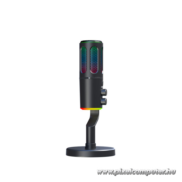 A 5 színű RGB világítás és a Neon mód nemcsak látványos, hanem személyre szabható is. A mikrofon színei illeszthetők a gamer setup fényvilágához, így minden stream egyedi hangulatot kap. A kompakt méret (250×125×125 mm) és a masszív asztali állvány biztosítja a stabil elhelyezést, miközben a mikrofon elegáns fekete színe modern megjelenést kölcsönöz az asztalnak.