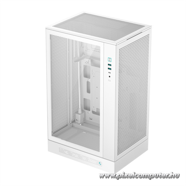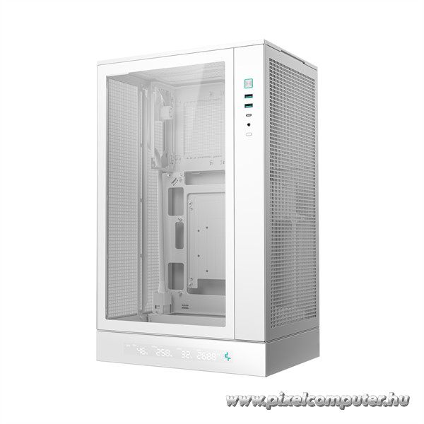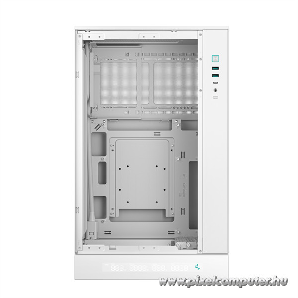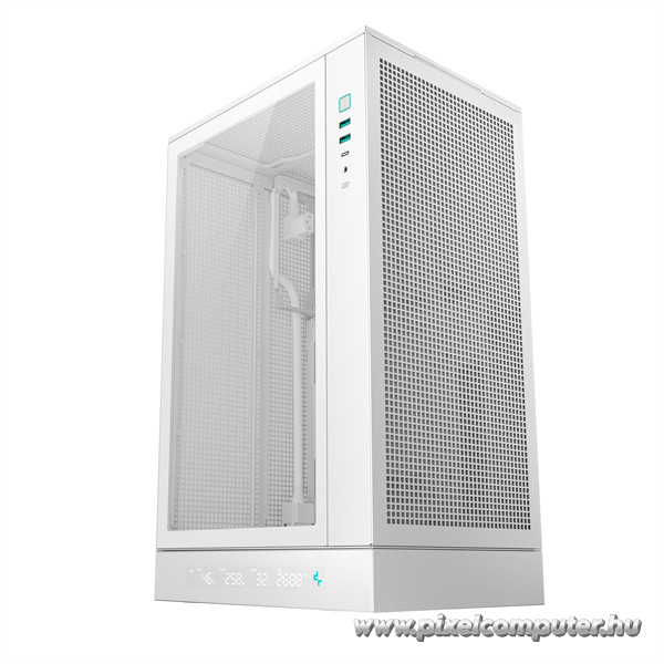 A DeepCool CH270 DIGITAL WH számítógépház kifejezetten azok számára készült, akik kompakt, mégis nagy teljesítményű rendszerben gondolkodnak. Ideális választás gamer PC-khez, munkaállomásokhoz vagy akár stílusos multimédiás központokhoz, ahol az esztétika és a funkcionalitás kéz a kézben jár. Az edzett üveg oldallap lehetőséget ad arra, hogy megmutasd az épített rendszered részleteit, míg a fehér színvilág és minimalista dizájn kifinomult, modern megjelenést biztosít minden környezetben. A kis méret ellenére a házban bőséges hely van, így a szerelhetőség is könnyed és akadálymentes.