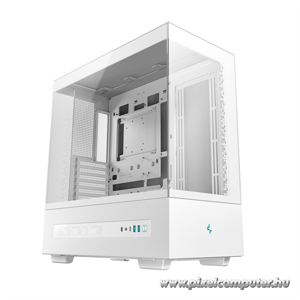 A DeepCool CH690 DIGITAL WH bámulatosan nagy belső térrel rendelkezik, ahol akár a legnagyobb alkatrészek is kényelmesen elférnek. A 450 mm-es GPU hossz lehetővé teszi, hogy a legmodernebb videokártyákat is beépítsd, miközben a 182 mm-es CPU hűtési magasság biztosítja a kompatibilitást a nagy lég- vagy vízhűtő rendszerekkel is. A belső elrendezés úgy lett kialakítva, hogy a kábeltakarás tökéletes legyen, így az épített rendszered nemcsak erős, hanem szemet gyönyörködtetően rendezett is lesz.