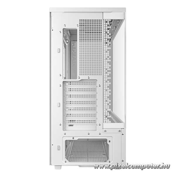 Ez a ház kifejezetten azok számára készült, akik maximális belső teret, kiváló hűtési lehetőségeket és letisztult megjelenést keresnek. A modern rendszerépítéshez szükséges összes csatlakozó rendelkezésre áll az előlapon, beleértve a Type-C portot is, így a legújabb eszközökkel is gyors kapcsolatot biztosít. A fehér színű dizájn és az edzett üveg oldallap különleges vizuális élményt nyújt, ami kiemeli a hardvered stílusát. A csavarmentes szerelés lehetővé teszi, hogy a szerelés gyors és egyszerű legyen, így nem kell kompromisszumot kötnöd sem dizájnban, sem funkcionalitásban.