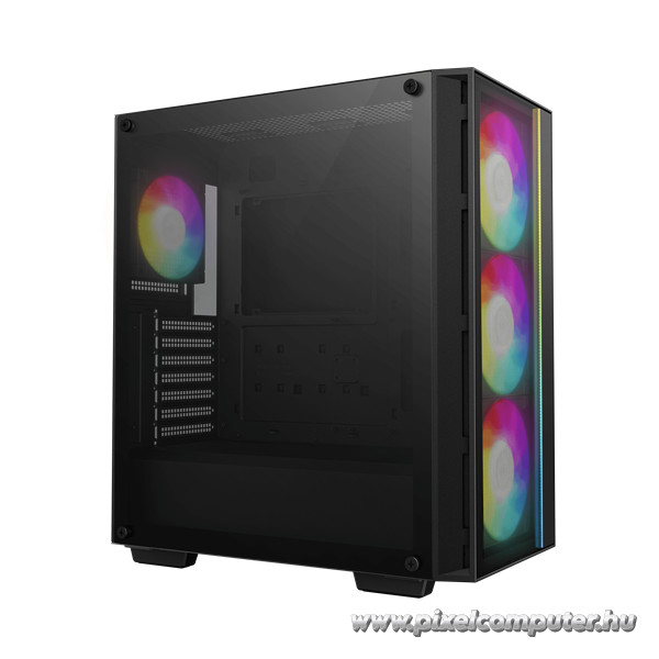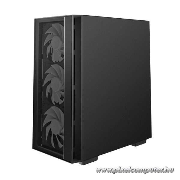 Ez a ház kifejezetten a PC-építők és gamerek igényeihez igazodik. A három elülső 140 mm-es ARGB ventilátor erőteljes légáramlást hoz létre, míg a hátsó 120 mm-es ventilátor hatékonyan vezeti ki a meleget. A hűtési teljesítmény mellett a csendes működés is kiemelkedő: a ventilátorok PWM vezérléssel működnek, így mindig a terheléshez igazodva pörögnek. Az előlapi Type-C port és a USB 3.0 csatlakozó gondoskodik arról, hogy minden modern perifériád könnyedén csatlakoztatható legyen.