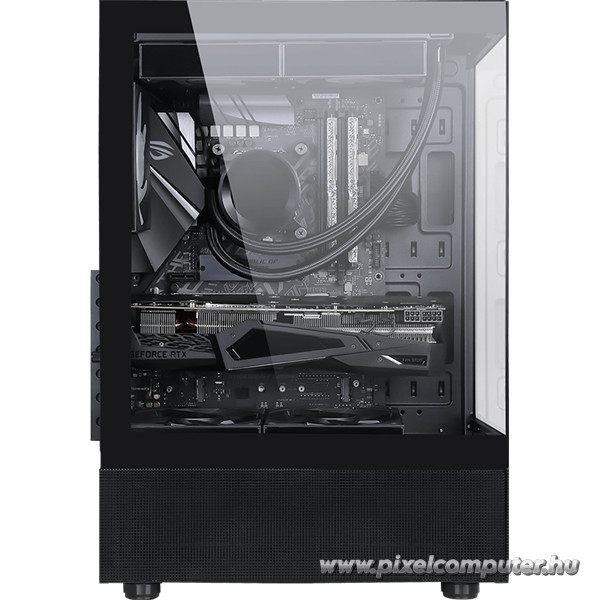 A Formula Crystal Z1 Black ház azoknak készült, akik szeretik, ha a teljesítmény és a design kéz a kézben jár. A tágas belső tér kényelmesen befogadja a nagyobb videokártyákat és hűtőket, miközben az átgondolt kábelmenedzsment tiszta és rendezett megjelenést garantál. A Pixelcomputer vásárlói különösen kedvelik a ház átlátszó oldalát, amely lehetőséget ad a gép látványos megvilágítására RGB-ventilátorokkal vagy LED-szalagokkal.