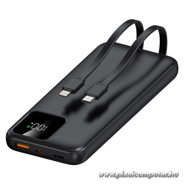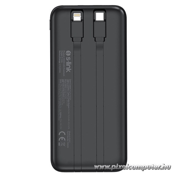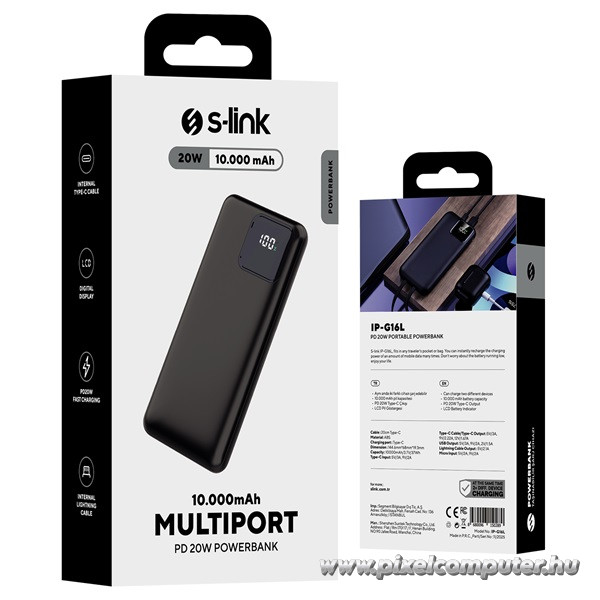 S-Link Powerbank - IP-G16L 10000mAh (3x Type-C, Lightning, 20W PD, led, fekete)